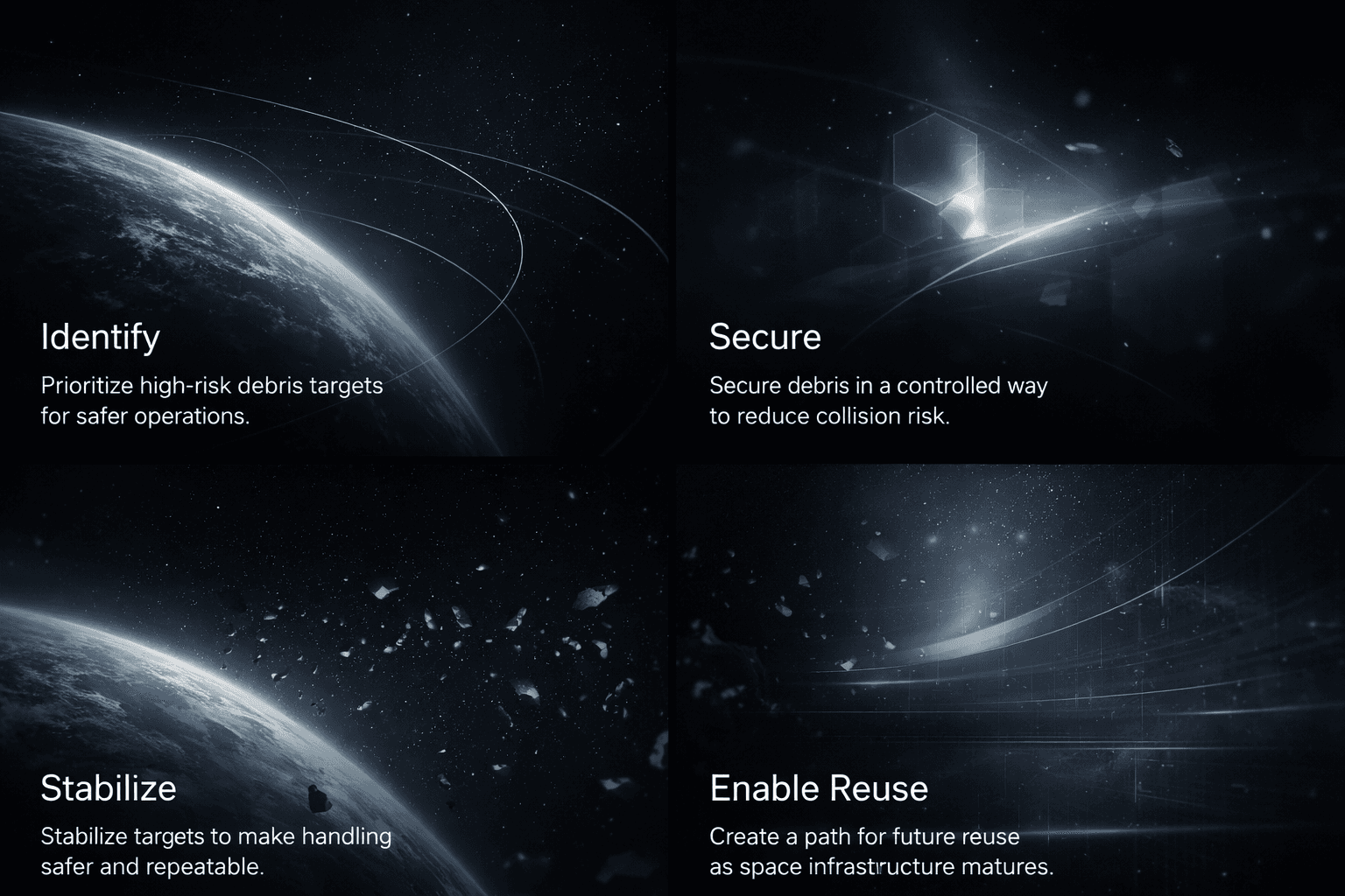 We’re building modular technology to secure orbital debris and make space operations safer. Our focus is practical, scalable debris management infrastructure for a sustainable space economy.